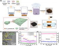 | Fig. 3. (a) The diagram of synthesis CVCx-QDs/nFCM. (b) HRTEM image of the CVCx-QDs/nFCM. (c) Rate performance and (d) cycle performance (400 mA/g) of CVCx-QDs/nFCM. Reproduced with permission [59]. Copyright 2021, Elsevier. | |