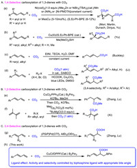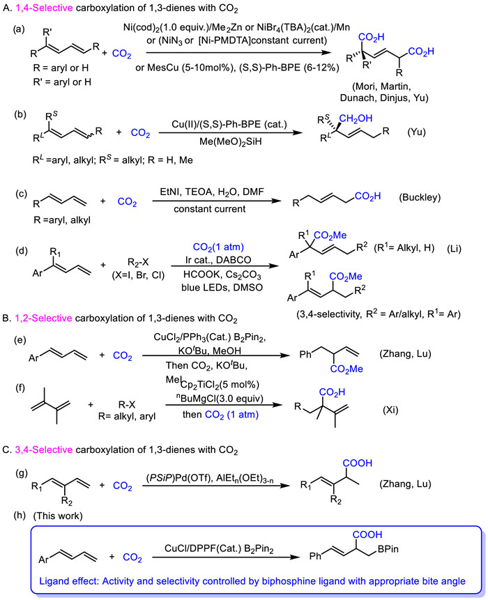 | Scheme 1. Carboxylation of 1,3-dienes and CO2 with specific regioselectivity. | |
