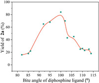 Taking both electronic and steric effect into account, the bite angle (βn), a comprehensive reflection of the electronic and steric effect of the bisphosphine ligand, was also introduced and valued by DFT calculation. The relationship between βn and the reactivity of 3,4-boracarboxylation was investigated, as illustrated in Table 1 and Fig. 6. The LCu-Bpin complexes with βn among 92°–1 06° shows benign catalytic activity, while too large (≥109°) and too small (≤86°) βn are not conducive to the reaction. The structure-activity relationship based on βn is consistent with that of steric hindrance of ligand. In fact, the macroscopic embodiment of βn is still a steric hindrance affected by the electronic effect. Therefore, it may be explained by that the LCu-Bpin complex with small βn ligand is not enough to interact with substrate to drive the substrate distortion, while excessively large βn supplies weak coordination of substrate to Cu center [66].