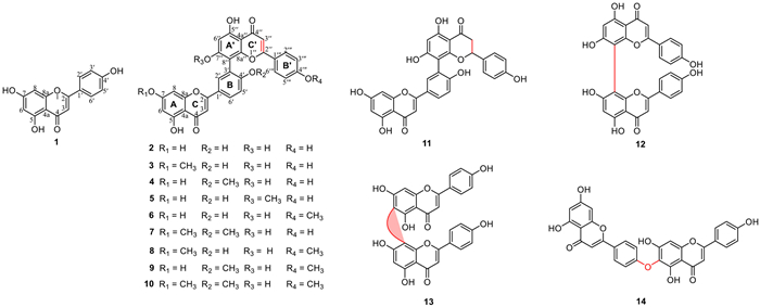 | Fig. 1. The chemical structures of apigenin (1) and biflavonoids (2−14). | |