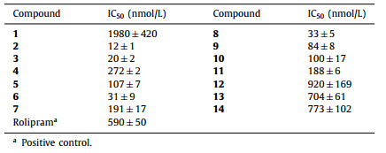 Table 1 IC50 values of the biflavonoids against PDE4D. |