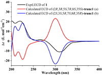 | Fig. 4. Calculated and experimental ECD spectra of 1. | |