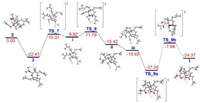 | Fig. 6. The calculated energy profile (kcal/mol) with DFT for the carbocation process of compound 1. | |