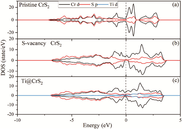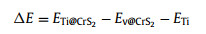 ETi@CrS represents the energy of Ti@CrS2, Ev@CrS represents the energy of CrS2 containing S vacancies, and ETi represents the energy of Ti atom in vacuum.