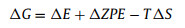 ΔE is obtained from DFT calculations, ΔZPE is zero-point energy, T is 298.15 K and ΔS is entropy change.