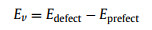 where N is the total number of particles, Eprefect is the total energy of the optimized cell, and Edefect is the total energy of the optimized cell containing vacancies.