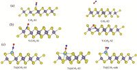 | Fig. 2. The configurations of (a) CrS2, (b) v-CrS2, and (c) Ti@CrS2, with NO adsorbed on them. The Cr, S, Ti, N and O atoms are denoted in the forms of purple, yellow, pale bule, bule, and red, respectively. | |