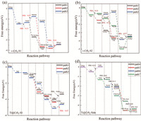 | Fig. 6. The reaction pathway of NO reduction on systems of (a) v-CrS2-S1, (b) v-CrS2-S1, (c) Ti@CrS2-S1, and (d) Ti@CrS2-Side. | |