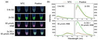 | Fig. 1. Illustration of the visual detection scheme of Salmonella DNA based on ratiometric fluorescence signals. (a) The mechanism of ratiometric fluorescence signals from SG and HNB during PCR. (b) Naked-eye visualization of PCR products under UV excitation and RGB analysis of the images. | |