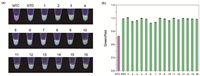 After PCR completed, the endpoint products were excited by UV (365 nm) with a UV transilluminator (Major Science, USA). The colored images under UV excitation were photographed via the camera of a smartphone (iPhone 13Pro). For numerical analysis of visualization results, the colored images were analyzed using a free smartphone app (Color Collect from WXColor Tech Ltd., China) for extraction of RGB values.