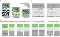 | Fig. 1. (a) A schematic diagram of the three different anode configurations for a battery. (b) Al powder forms intimate contact with the solid electrolyte layer. (c) Four requirements for enabling an anode-free all-solid-state battery. Reproduced with permission [3]. Copyright 2024, Springer Nature. | |