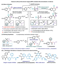 | Fig. 1. Previous work on sulfonyl bifunctional reagent mediated difunctionalization of alkenes and our working hypothesis. | |