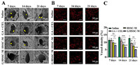 | Fig. 4. The regulatory effect of G/HSSC-M on tumor angiogenesis. (A) Images of tumor vascular lumen taken by SEM. (B) Tumor vascular endothelial staining with CD31. (C) Quantitative results of microvessel density in each treatment group. P < 0.05, **P < 0.01, ***P < 0.001 vs. the saline group. Mean ± SD (n = 3). | |