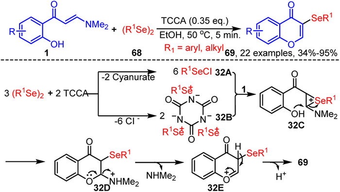 | Scheme 32. TCCA-mediated synthesis of 3-selenylated chromones. | |