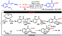 | Scheme 33. Electrochemical synthesis of 3-selenylated chromones. | |