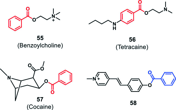 | Fig. 16. Structures of benzoylcholine, tetracaine, cocaine and probe 58. | |