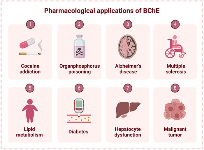 | Fig. 2. Pharmacological applications of BChE. Created with BioRender.com. | |