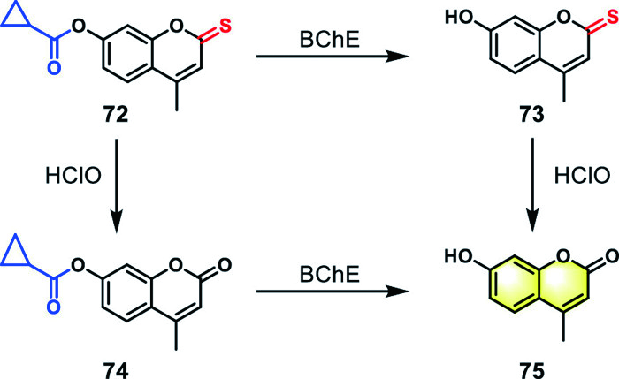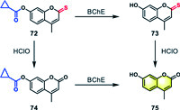 | Fig. 22. Structure of dual-responsive probe 72 and its fluorescence generation mechanism. | |