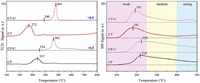 | Fig. 2. H2-TPR (a) and NH3-TPD (b) profiles of various fresh and used samples. | |