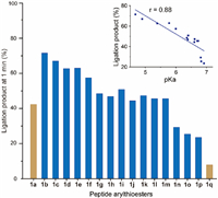 | Fig. 2. Comparison of the ligation activity of 17 arylthioesters. Inset: Pearson correlation for the 15 arylthioesters highlighted in blue (arylthiol pKa: 4.0–7.0). | |