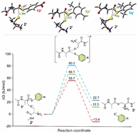 | Fig. 3. DFT-calculated free energy profiles for the transthioesteri-fication step explaining the observed unusual ligation activity of arylthioesters. | |