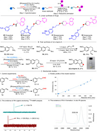 | Scheme 3. Practical application and preliminary mechanistic studies. (A) Linear syntheis of drugs. (B) Total synthesis of (±)-crispine A. (C) Mechanistic studies. | |