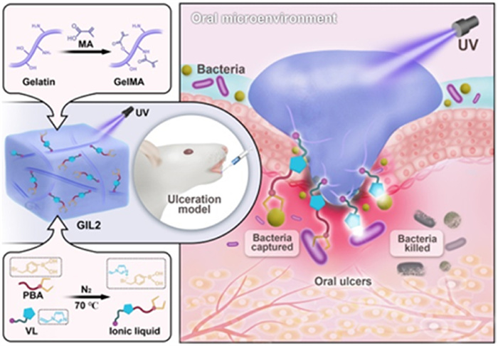 | Scheme 1. Development and utilization of GIL2 hydrogel in treating bacterial-infected oral ulcers. | |