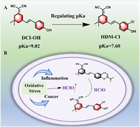 | Scheme 1. (A) Structure of fluorophore DCI-OH and HDM-Cl. (B) Molecular design of the probe HDM-Cl-HClO and proposed response mechanisms for HClO. | |