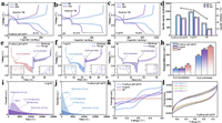 | Fig. 5. (a-d) The discharge-charge voltage profiles of self-discharge behavior with Co6Mo6C2@Co@NC/PP, Co@NC/PP and PP batteries. GITT voltage profiles of (e) Co6Mo6C2@Co@NC/PP, (f) Co@NC/PP, and (g) PP batteries. (h) A columnar comparison of potential difference. (i) Capacities of Li2S deposition on the Co@NC/PP separator in Li2S8 electrolyte solution. (j) Capacities of Li2S deposition on the Co6Mo6C2@Co@NC/PP separator in Li2S8 electrolyte solution. (k) CV curves of Li2S6 symmetric batteries using Co6Mo6C2@Co@NC/PP, Co@NC/PP and PP as electrodes at the scan rate of 10 mV/s. (l) CV curves of Li2S6 symmetric batteries using Co6Mo6C2@Co@NC/PP, as electrodes at the scan rate of 20, 30, 40 and 50 mV/s. | |