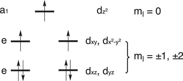The In a trigonal bipyramidal, the splitting of the d orbital by the ligand field usually results in the scheme (Fig. 6), where the
