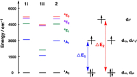 We will not perform a detailed analysis of the relationship between the structure of the complexes and the anisotropy. We will only comment the results of the calculations and try to extract only general ideas on the effect of the axial ligands on the anisotropy. The ab initio calculations result of the energy spectrum for the compounds 1 and 2 can be seen in Fig. 7.