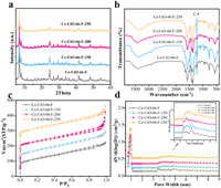 | Fig. 3. Characterization of the Ce-UiO-66-F and active Ce-UiO-66-F-X catalyst: (a) XRD, (b) FTIR, (c) N2 sorption isotherms and (d) pore size distributions. | |