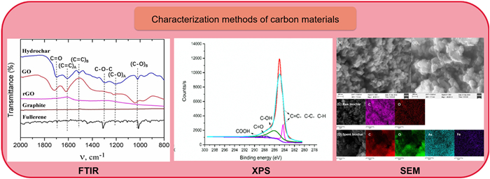 | Fig. 9. Characterization methods of carbon materials including X-ray photoelectron spectroscopy (XPS), fourier transform infrared spectroscopy (FTIR), and scanning electron microscopy equipped with energy dispersive X-ray spectroscopy (SEM-EDX). Reprinted with permission [62]. Copyright 2021, Elsevier. | |