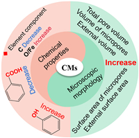 CMs, known for their extensive specific surface area, high porosity, excellent electron conductivity, and relative chemical inertness, have garnered significant attention from researchers worldwide as environmentally friendly materials [36,37]. After conducting extensive researches, it has been determined that the adsorption capacity of CMs for micro-pollutants is relatively lower [38-40]. The activation of hydrogen peroxide (H2O2) by CMs to generate hydroxyl radicals (•OH) was observed by researchers, and subsequent analysis indicated a correlation between these •OH groups and the presence of persistent free radicals (PFRs) on CMs [41]. The role of CMs in the conversion of biomass through chemical and enzymatic processes is twofold, serving as both a catalyst and a catalytic support [42-44]. The development of numerous strategies for activation has thus far been accomplished. Successful approaches encompass the metals activation, acid/alkaline activation, doping with heteroatoms, and additional methods [45-48].
