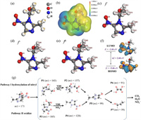| Fig. 5. (a) Optimized molecular structure. (b) Molecular electrostatic potential. (c–e) Calculated Fukui index. (f) HOMO and LUMO distributions for MTZ. (g) Possible degradation pathways of MTZ. | |