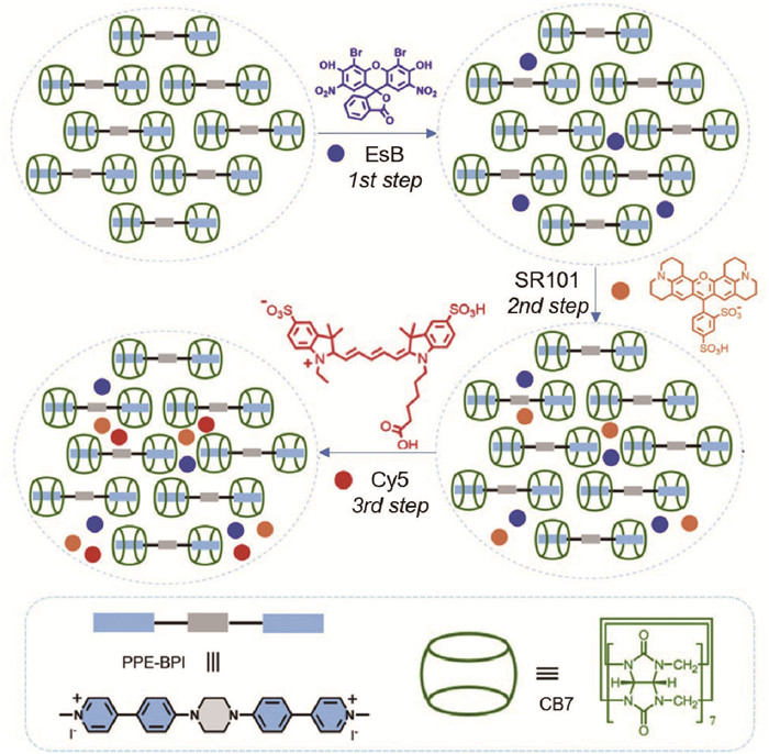 | Fig. 3. Schematic illustration of the three-step sequential energy transfer process of PPE-BPI-2CB[7]. Reproduced with permission [6]. Copyright 2025, Elsevier Publisher. | |