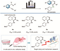 Recently, Prof. Zhixiong Ruan’s group has developed an efficient electrochemical approach for the synthesis of selenoheterocyclic compounds for cancer therapy applications (Scheme 1) [5]. These selenoheterocyclic compounds were synthesized under mild conditions without oxidant and catalyst. Based on the mechanistic study, the electrochemical selenoheterocyclic products were formed through seleniumcationic intermediates. Among these synthetic selenoheterocyclic compounds, compounds 4o, 5n and 5o demonstrated promising antitumor effects. These compounds suppressed lung cancer progression by inhibiting the proliferation, migration and invasion of lung cancer cells, suppressing epithelial-mesenchymal transition and inducing cell apoptosis and DNA damage. In addition, compound 5o inhibited tumor growth and metastasis in vivo with a favorable safety profile. What is more, compound 5o was reported to be the first small molecular inhibitor of DEAD-box helicase 10 (DDX10). The marketed selenium-containing drugs such as Sodium Selenite Tablets and Selenious Yeast Capsules are used to treat diseases caused by selenium deficiency, such as Keshan disease, but the anti-tumor efficacy remains uncclear. The clinical candidate drugs for tumor treatment such as methylseleninic acid and selenomethionine are currently undergoing clinical trials. This groundbreaking study not only establishes an efficient synthetic strategy for selenoheterocyclic compounds but also identifies both a promising lead compound and a potential therapeutic target, thereby providing new avenues for antitumor drug development and expanding treatment options for lung cancer.