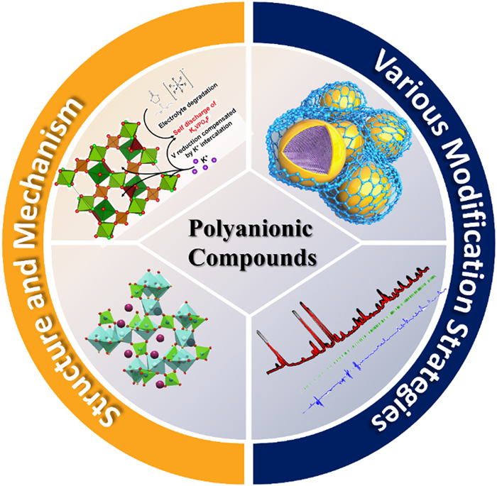 Polyanionic cathode materials are typically represented by the chemical formula LixMy(XOn)z, where M represents transition metal elements such as Fe, Ni, Mn, and X represents elements like S, P, Si, B, etc. These cathode materials have the following advantages: (1) The structural framework is relatively stable during lithiation/delithiation process, possess better thermal stability and safety compared to oxide cathodes; (2) The battery voltage is higher than that of oxide counterparts with the same redox pairs; (3) The ionic character of the M–O bond can be adjusted by varying M and X, which allows for the design of discharge potentials that meet application requirements (inductive effect); (4) They possess a rich variety of crystal structures, providing possibilities for cation and anion substitution in a given structure. However, polyanionic cathodes also have significant drawbacks: (1) Lower electrical conductivity; (2) Limited theoretical specific capacity because of their large molecular weight of the polyanion groups. To further reduce costs and develop iron-based cathodes, in the late 1980s, Goodenough et al. [118] researched a series of iron-based polyanionic oxides Fe2(XO4)3 (X = Mo, W, S). Compared with Fe2O3, the P–O covalent bond endows LiFePO4 with a higher voltage. Based on this, they proposed the inductive effect of cation Xn+ to enhance the cathode potential [119].