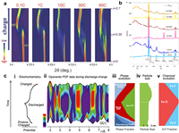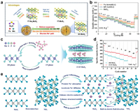 | Fig. 3. Design of DRX and DRXPS cathodes. (a) The partially disordered spinel phase as an intermediate between the DRX and fully ordered spinel structures. (b) Schematic of the structural evolution of Li1.2Mn0.65Ti0.15O1.9F0.1 with each synthesis step. (c) The structure of M2O4, M2−uO4 and M2−u[XO4]xO4(1−x). (a-c) Reproduced with permission [115–117]. Copyright 2024, Springer Nature. | |