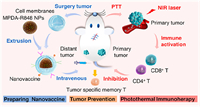 4.2. Combined with phototherapyPhototherapy can kill tumor cells and make them release antigens, which then make the immune system respond [113,114]. However, the immune response induced by photothermal therapy (PTT) is not strong due to immunosuppression. For example, in breast cancer, although surgical treatment is the main treatment for primary breast cancer, the removal of residual tumor cells around the cavity can lead to a high degree of recurrence and metastasis [115]. In addition, the inflammatory response in the wound bed after surgery also exacerbates local immunosuppression, which further promotes the recurrence and metastasis of tumor cells [116].