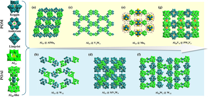 Classified according to the amount of Al3+ embedded in the POMs, the history of the development from mono-Al-substituted POMs to the formation of POM-based AlOC structures in the presence of the Keggin and Dawson POMs anion template is first described separately.