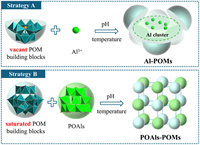 | Scheme 1. The reaction strategy can be chosen according to the target requirements: Strategy A: to obtain Al-POMs then vacant POM building blocks with coordination sites are required; Strategy B: to obtain POAls@POMs then saturated POM units and intact POAl clusters are required. | |