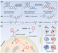 | Scheme 1. (a) Proposed mechanism of high cellular uptake NIR fluorogenic dyes and probes in response to polarity. (b) Cellular uptake schematic diagram of probe CSFNS. (c) Schematic representation of cellular polarity in various types of living cells monitored by CSFNS. | |