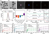 | Fig. 1. Characterizations of DI/MSN-SS-GA. TEM images of MSN (a), MSN-SS-GA (b). (c) EDX mapping images of MSN-SS-GA. (d) Particle size distribution of MSN, MSN-SH, MSN-SS-NH2, and MSN-SS-GA. (e) Zeta potentials of MSN, MSN-SH, MSN-SS-NH2, MSN-SS-GA and DI/MSN-SS-GA. (f) FTIR spectra of MSN, MSN-SH, MSN-SS-NH2, MSN-SS-GA. Release curves of DI/MSN-SS-GA for DOX and ICG in PBS 7.4 (g, i) and PBS 6.5 (h, j) with or without GSH and NIR irradiation. Data are presented as mean ± standard deviation (SD) (n = 3). | |
