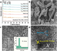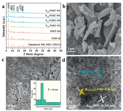 | Fig. 1. (a) Powder XRD patterns of the samples. (b) SEM image of S1.8/NMT-NS. (c) TEM image of S1.8/NMT-NS. (d) HRTEM image of S1.8/NMT-NS. | |
