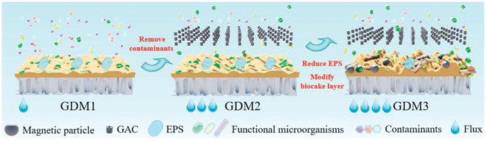 Therefore, this study combined GAC and magnetic particles to improve the GDM system performance. Furthermore, the effect of GAC and magnetic particles on the GDM flux variation and removal performance was evaluated. The possible mechanism of combined GAC and magnetic particles was discussed from the biocake layer structure, composition, and microbial community. This study aimed to provide a fundamental for developing sustainable and high-efficiency GDM technology.