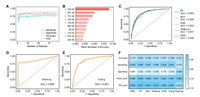 Besides these traditional machine learning models, an ensemble learning scheme called stacking [34] has been attempted to combine multiple machine learning models to improve the performance. Stacking is a general two-level framework. The first layer consists of multiple machine learning models, while the second layer is a meta-learner that takes the output of the classifiers in the first layer as input to generate the final output of the entire model (Fig. 3B). In this case, we used SVM, XGBoost and MLP in the first layer. The stacking model with RF as the meta-learner could reach 0.818 accuracy, 0.855 sensitivity and 0.768 specificity (Fig. 3E and Table S6 in Supporting information). The AUC of ROC curve and AUC of PR curve of the stacking model could achieve 0.902 and 0.855, respectively (Fig. 3C). The confusion matrix shows that 542/634 malignant pulmonary nodule samples and 357/435 benign controls can be correctly diagnosed using this model (Fig. 3F).