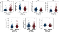 | Fig. 5. Comparison of the relative intensities of the seven metabolic biomarkers between the benign and malignant samples. Two-tailed Student t-test was performed for comparing groups, and adjusted P values were calculated by Benjamini and Hochberg correction. ****P < 0.0001. | |