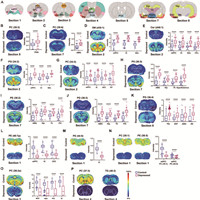 After the preparation of brain sections, the specimens were treated by vacuum drying and matrix spraying using 2,5-dihydroxybenzoic acid, and then MALDI-MSI scanning was performed for in situ analysis of lipid. MSI data were sequentially subjected to the segmentation of spatial metabolic profile and evaluation of disturbance degree at the whole brain level, as well as the spatial distribution of specific lipid in multiple brain regions (Fig. 2B).