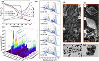 | Fig. 3. (a) TGA and DSC curve of Fe−MOFs, Fe/Ce−MOFs and Ce−MOFs. Reproduced with permission [54]. Copyright 2022, Elsevier. (b) Fe 2p XPS spectra and (c) 3D TG−FTIR spectra of nano Fe0 modified porous fiber electrodes (NZVIF). Reproduced with permission [61]. Copyright 2023, Elsevier. (d) SEM images of MIL−53(Fe), FeCu−N doped C (Fe1Cu2−NC) and Ce/Fe@C. Reproduced with permission [53,57]. Copyright 2024, Elsevier. (e) SEM images of Fe/Cu−NH2−BDC, Fe/Cu−C400Ar and Fe−PC(800). Reproduced with permission [56,60]. Copyright 2023 and 2024, Elsevier. (f) TEM image of Mn/Fe@PC. Reproduced with permission [51]. Copyright 2020, Elsevier. (g) TEM image of Fe/Cu−C400Ar. Reproduced with permission [60]. Copyright 2023, Elsevier. | |